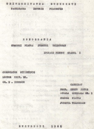 MONOGRAFIA COMUNEI PIATRA JUDEȚUL TELEORMAN,